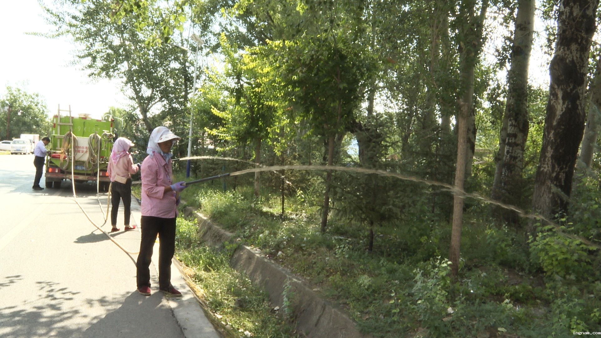 崇信县住建局调配充足的人力和物力投入到县城绿化带的抗旱工作中。