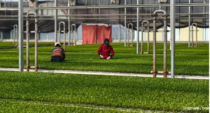汭水河畔,阳光倾洒,在崇信县锦屏镇东庄村,汭河川现代循环农业示范园,钢架大棚连绵成片,仿佛白色的海洋。棚内500万株新苗正绽绿吐翠,奏响生命的乐章,工人们脚步匆匆,忙着抢抓农时进行种苗培育。